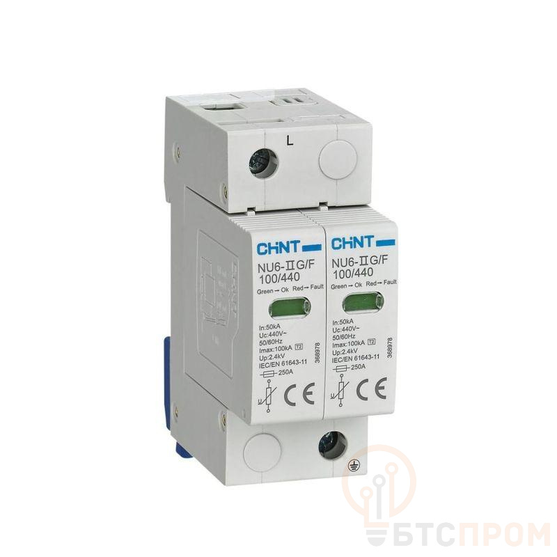 Ограничитель импульсных перенапряжений NU6-IIG 2п In=15кА Uc=440В Im=40кА (R) CHINT 252526 фото в каталоге от BTSprom.by