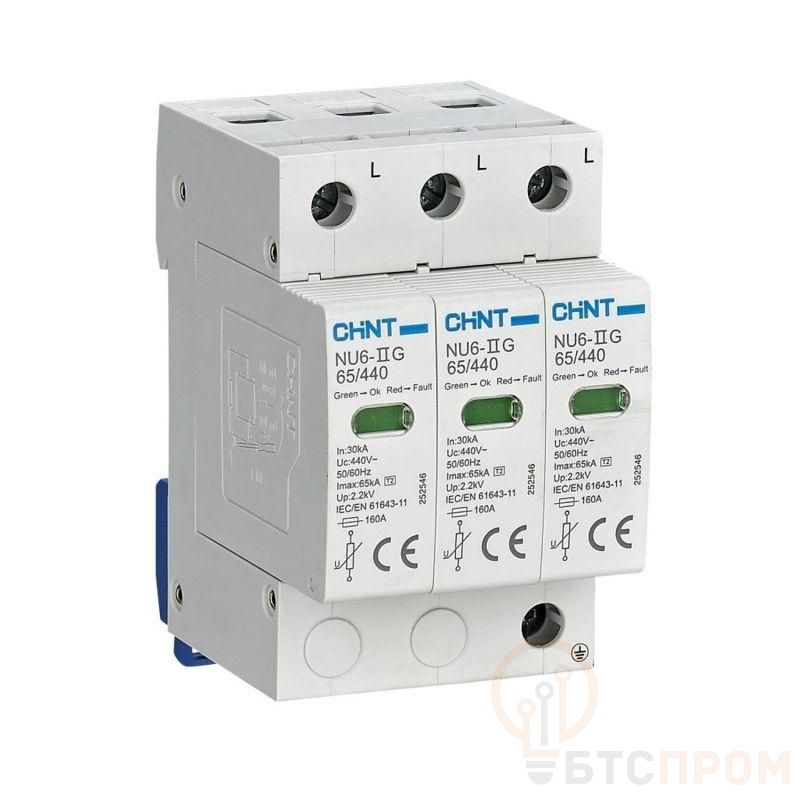 Ограничители импульсных перенапряжений серии NU6-IIG предназначены для защиты от повреждения грозовым разрядом и аварийными скачками напряжения любых чувствительных к перенапряжениям устройств. Они могут применяться в сетях с системами заземления: TN, TT, IT. Ограничители перенапряжения протестированы ударной волной 8/20 мкс. Основные характеристики: Количество полюсов – 1P, 2P, 3P, 4P Номинальное рабочее напряжение – АС240/415В Номинальный разрядный ток – 15 кА, 25 кА, 40 кА Максимальный разрядный ток – 40 кА, 60 кА, 100 кА Исполнение вспомогательных контактов – 1НO+1НЗ Степень загрязнения – 2 Степень защиты – IP20 Ширина полюса – 40 и 60кA - 18мм; 100 кА - 36мм Монтаж – на симметричную DIN-рейку 35 мм