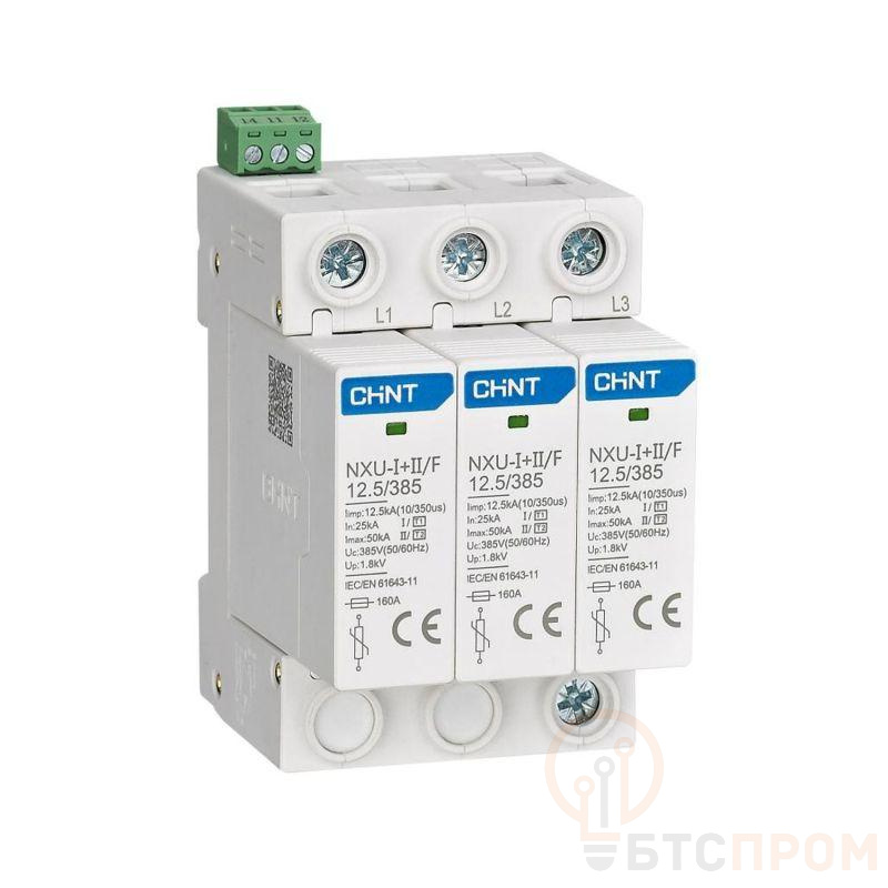 Ограничитель импульсных перенапряжений NXU-I+II/F 3P In=25кА Uc=385В Im=50кА (R) CHINT 308597 — это современное устройство для защиты электрооборудования от скачков напряжения в сетях до 385В. Модель сочетает в себе две ступени защиты (типы I и II), что обеспечивает надежное подавление как мощных импульсных токов от прямых ударов молнии, так и перенапряжений коммутационного характера.