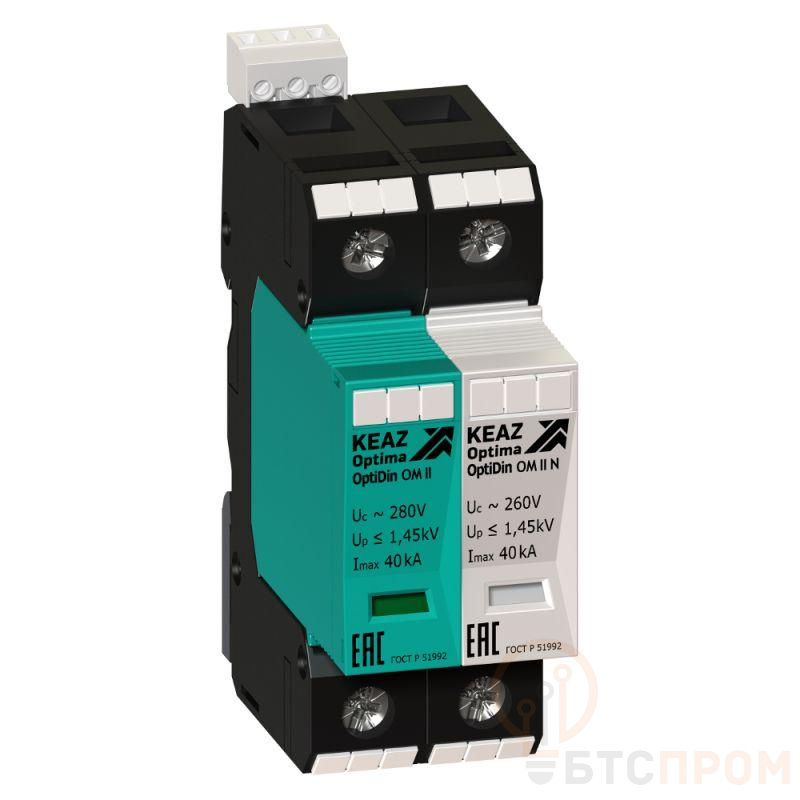 Устройство защиты от импульсных перенапряжений класса II + III с типом полюса 1P+N и однофазной питающей сетью.