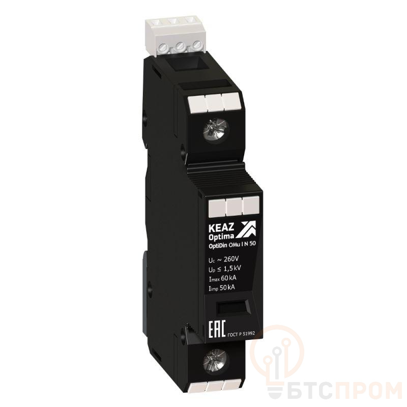 Устройство защиты от импульсных перенапряжений класса I + II + III с типом полюса N и однофазной питающей сетью.