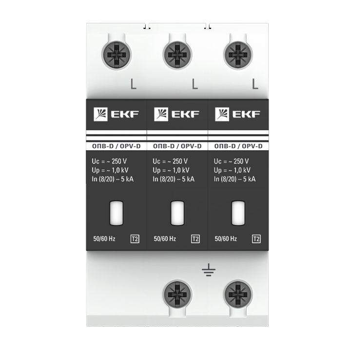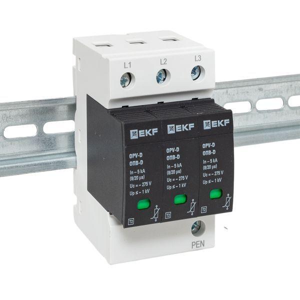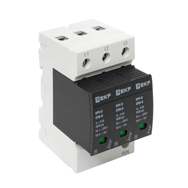 Ограничитель перенапряжения имп. ОПВ-D/3п In 5кА 230В EKF opv-d3 фото в каталоге от BTSprom.by