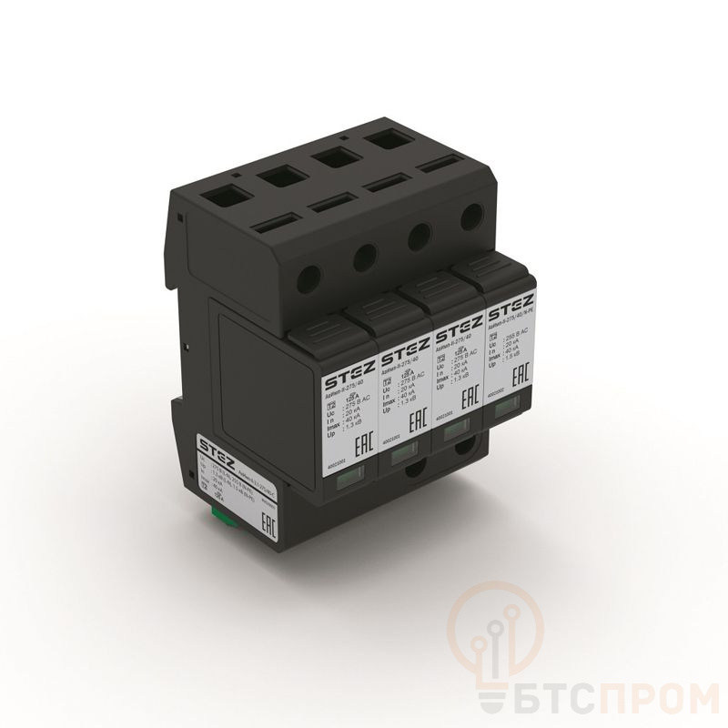 - Максимальный разрядный ток (Imax): 40 кА (8/20 мкс)