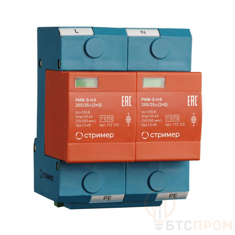 Устройство защиты от импульсных перенапряжений РИФ-Э-I+II 255/25 с (2+0) Стример 112112