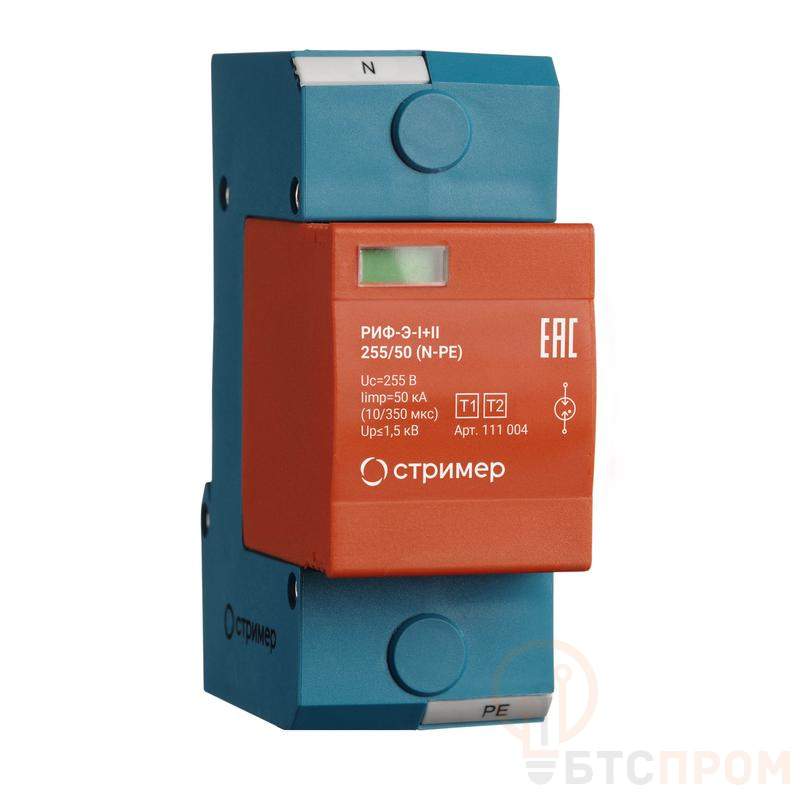 Мощное однополюсное УЗИП класса I коммутирующего типа. УЗИП выполнено в виде сменного модуля с газонаполненным разрядником и базы для подключения к сети и креплению к DIN-реи?ке 35 мм. УЗИП выдерживает токовые нагрузки, соответствующие УЗИП класса I, а по способности ограничения импульсных напряжении?, допустимых для изоляции оборудования, соответствует УЗИП класса II. Устанавливается в пределах 0А(В) – 1 зон молниезащиты (в соответствии с ГОСТ Р МЭК 62305-1 и СО-153-34.21.122). Применяется для сетеи? с системами заземления: TN-S, ТТ. Предназначено для защиты нулевого проводника N/PE. Рекомендуемый номинал предохранителя 200 А gL/gG