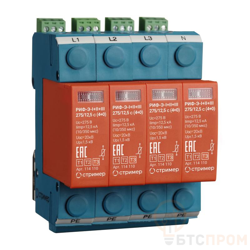Устройство защиты от импульсных перенапряжений РИФ-Э-I+II+III 275/12.5 с (4+0) Стример 114110 фото в каталоге от BTSprom.by