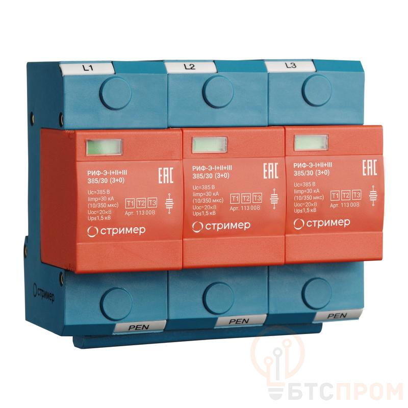 Устройство защиты от импульсных перенапряжений РИФ-Э-I+II+III 385/30 (3+0) Стример 113008 фото в каталоге от BTSprom.by
