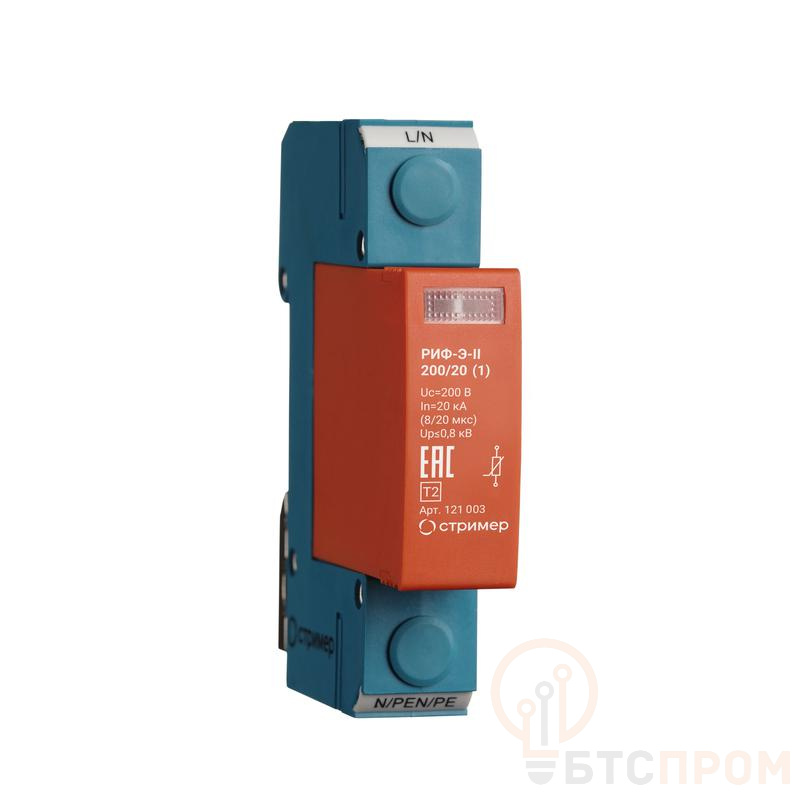 Однополюсное УЗИП класса II ограничивающего типа. УЗИП выполнено в виде сменного варисторного модуля и базы для подключения к сети. Соответствует УЗИП класса испытаний II согласно ГОСТ IEC 61643-2013. Устанавливается в пределах 1 – 2 зон молниезащиты (в соответствии с ГОСТ Р МЭК 62305-1 и СО-153-34.21.122). Применяется для сетей с любыми системами заземления. Предназначено для защиты фазного проводника L/N, L/PEN, L/PE. Рекомендуемый номинал предохранителя не менее 63 А gL/gG.