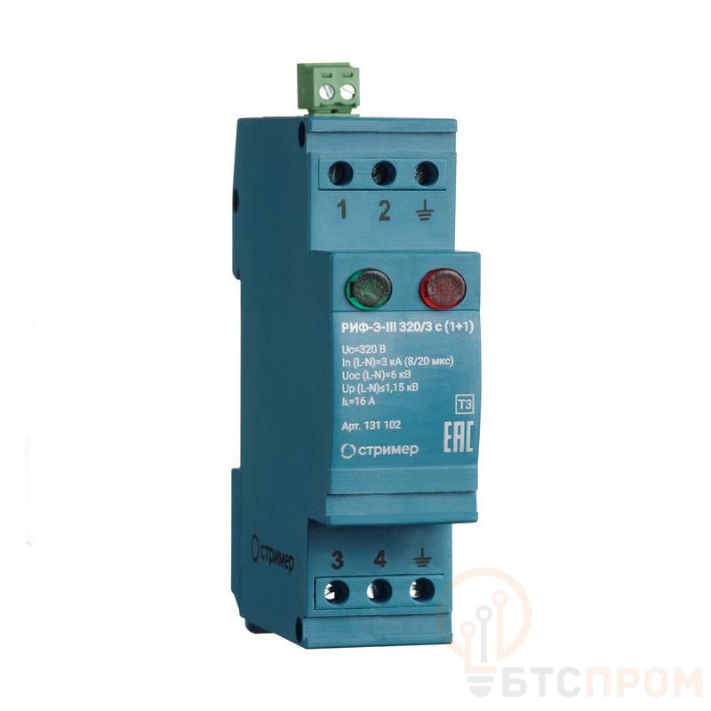 УЗИП класса III комбинированного типа. Предназначено для защиты конечных потребителеи? от остаточных бросков импульсных перенапряжении?.УЗИП размещено в корпусе для крепления на DIN-реи?ку 35 мм. Оснащено контактами дистанционной сигнализации повреждения рабочего элемента. УЗИП соответствует классу испытании? III согласно ГОСТ IEC 61643-2013. Устанавливается после УЗИП класса II в пределах 2–3 зон молниезащиты (в соответствии с ГОСТ Р МЭК 62305-1 и СО-153-34.21.122) непосредственно вблизи защищаемого оборудования. Защищаемое оборудование рекомендуется размещать на расстоянии не более 15 м от УЗИП класса испытаний III. Применяется для сетей однофазного напряжения питания. Возможна установка после УЗО из-за отсутствия тока утечки. Рекомендуемый номинал предохранителя 16 А gL/gG
