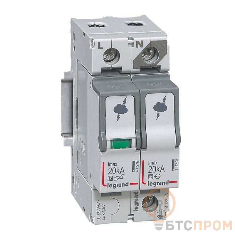 Устройство защиты от импульсных перенапряжений (УЗИП) T2 1P+N 20кА Legrand 412226 — надежный ограничитель перенапряжений, предназначенный для защиты однофазной сети 220/380В. Устройство эффективно подавляет импульсные перенапряжения, вызванные грозовыми разрядами или коммутационными процессами в электросети.