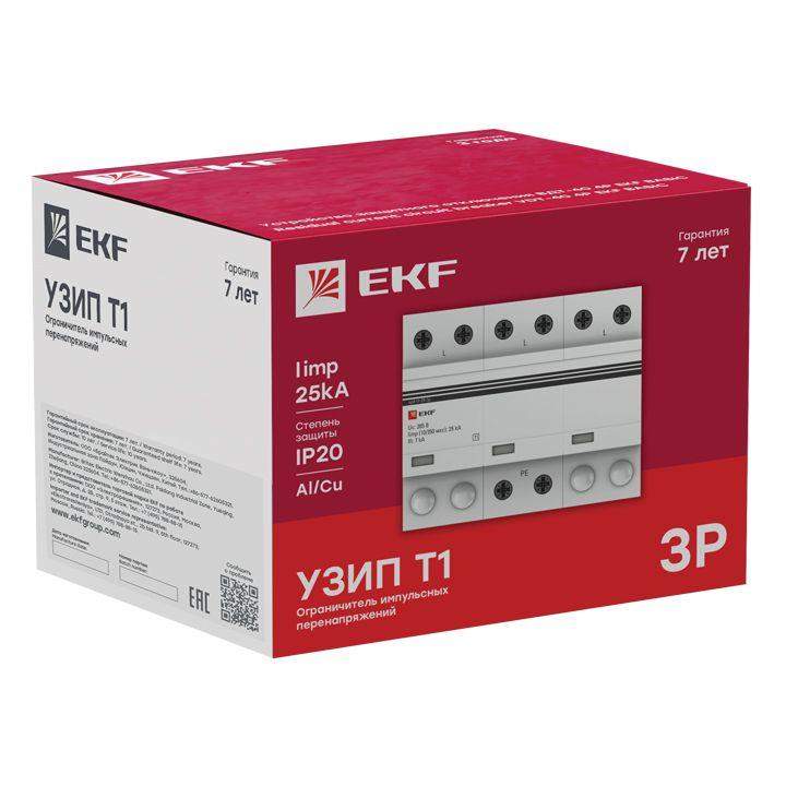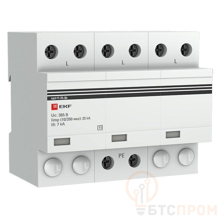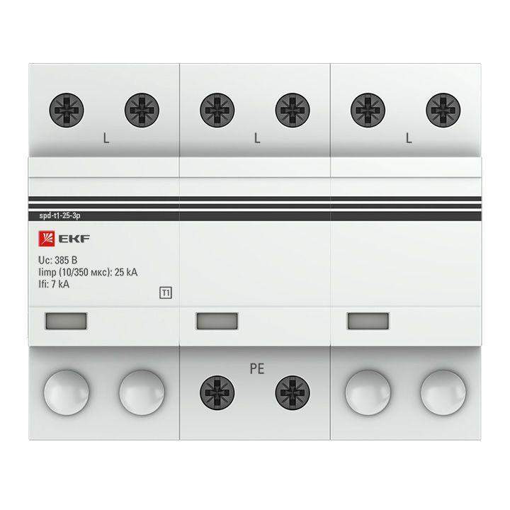 Устройство защиты от импульсных перенапряжений УЗИП Тип 1 Iimp 25кА (10/350мкс) 3P EKF spd-t1-25-3p фото в каталоге от BTSprom.by