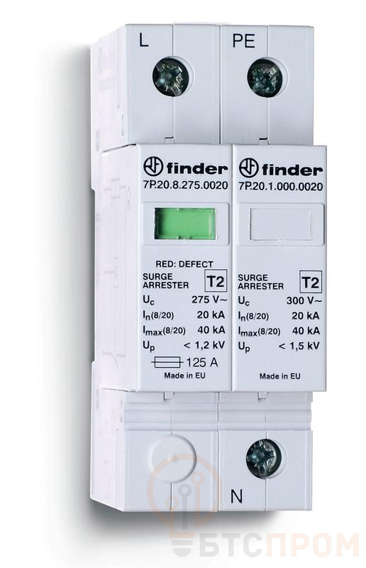 Устройство защиты от импульсных перенапряжений УЗИП тип 2 (1 варистор + 1 искровый разрядник) модульный 35мм IP20 FINDER 7P2282751020