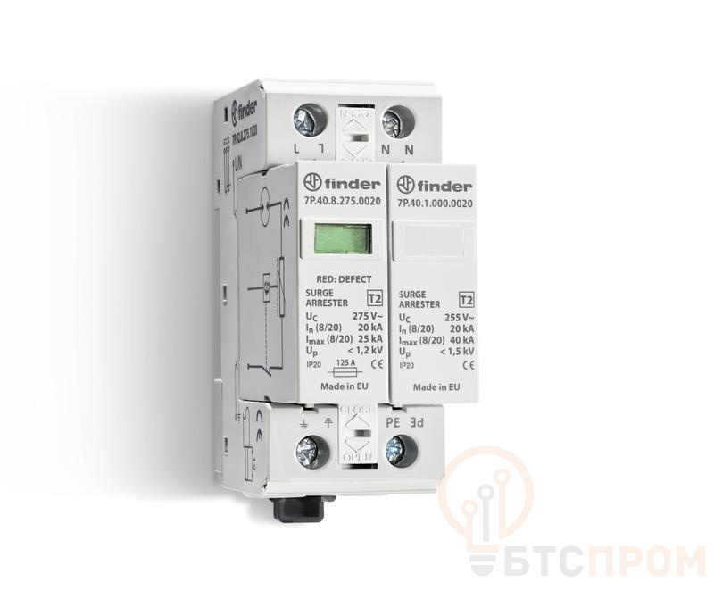 Устройство защиты от импульсных перенапряжений УЗИП тип 2 (1 варистор/разрядник + 1 разрядник) FINDER 7P4282751020