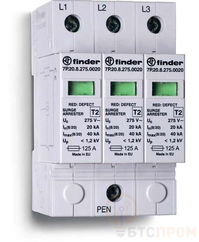 Устройство защиты от импульсных перенапряжений УЗИП тип 2 (3 варистора) модульный 52.5мм IP20 FINDER 7P2382751020