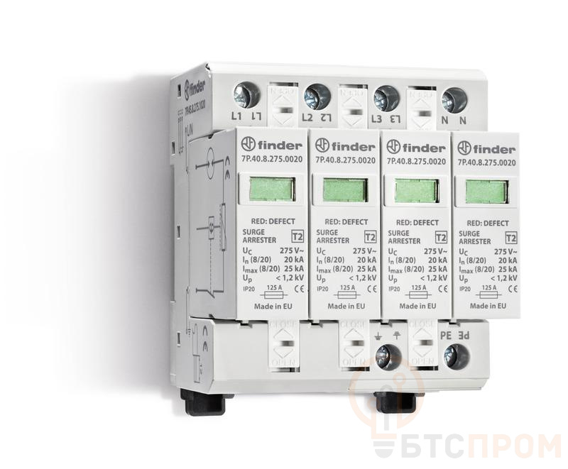 Устройство защиты от импульсных перенапряжений УЗИП тип 2 (4 варистор/разрядник) FINDER 7P4582751020