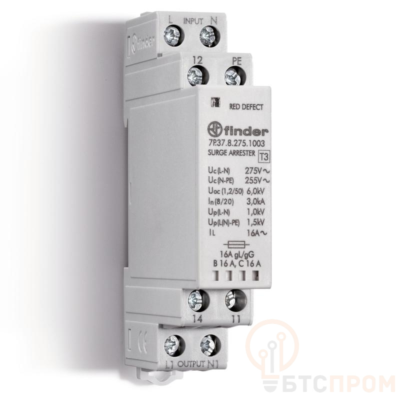 Устройство защиты от импульсных перенапряжений УЗИП тип 3 (1 варистор + 1 искровый разрядник) модульный 17.5мм IP20 FINDER 7P3782751003
