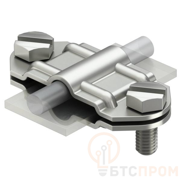 Данный соединитель используется для продольного подсоединения круглой проволоки (диаметром до 8 мм) к стальной полосе (размером до 30x3,5 мм). Он находит широкое применение при монтаже молниезащиты и систем заземления, обеспечивая прочный механический контакт и непрерывность электрической цепи. Монтаж осуществляется без специального инструмента, что ускоряет проведение работ.