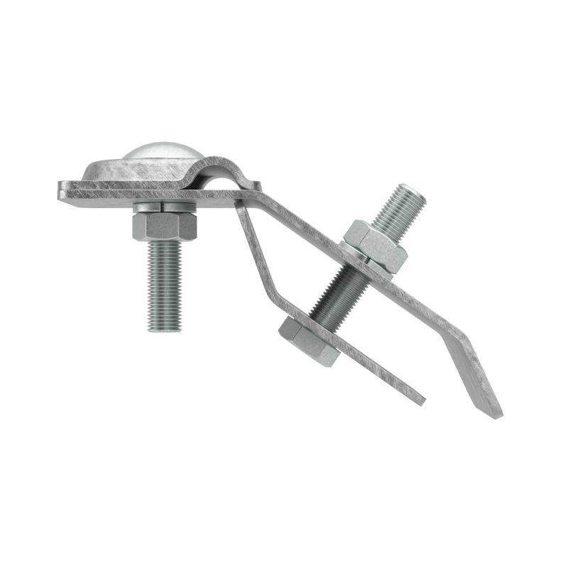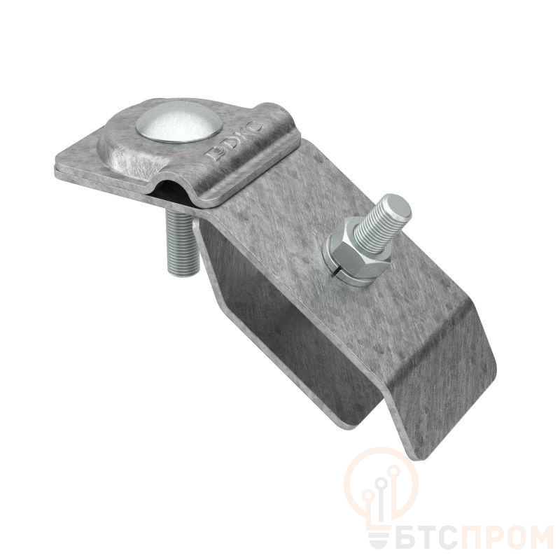 Держатель прутка на водостоке используется для крепления круглого проводника 8-10 мм к водосточным желобам. Конструкция держателя позволяет закреплять пруток как вдоль, так и поперек водостока. Способ крепления проводника - болтовой зажим. Материал - горячеоцинкованная сталь.
