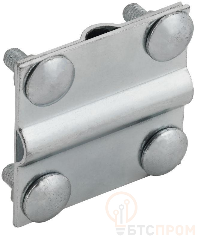 Зажим крестообразный полоса/пруток-полоса/пруток предназначен для крестообразного соединения плоских и круглых проводников. Материал корпуса - сталь с гальваническим цинковым покрытием.