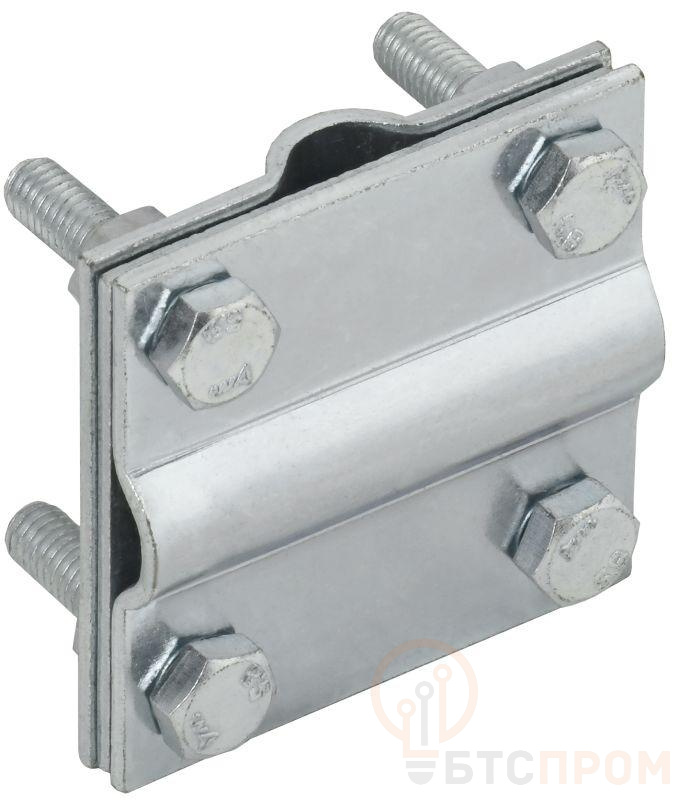 Зажим крестообразный с разделителем полоса/пруток-полоса/пруток предназначен для крестообразного соединения плоских и круглых проводников. Состоит из трёх пластин. Средняя, плоская пластина, позволяет увеличить количество соединяемых проводников. Материал корпуса - сталь с гальваническим цинковым покрытием.
