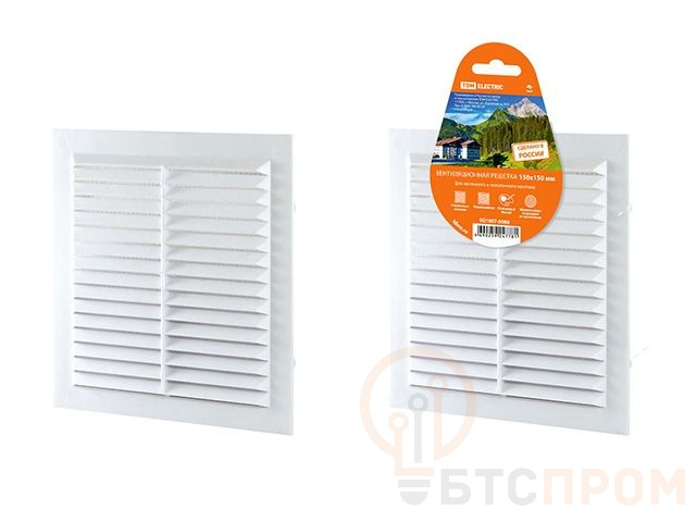 Решетка вентиляционная неразъемная с москитной сеткой, бел. 150х150 TDM SQ1807-0086 фото в каталоге от BTSprom.by