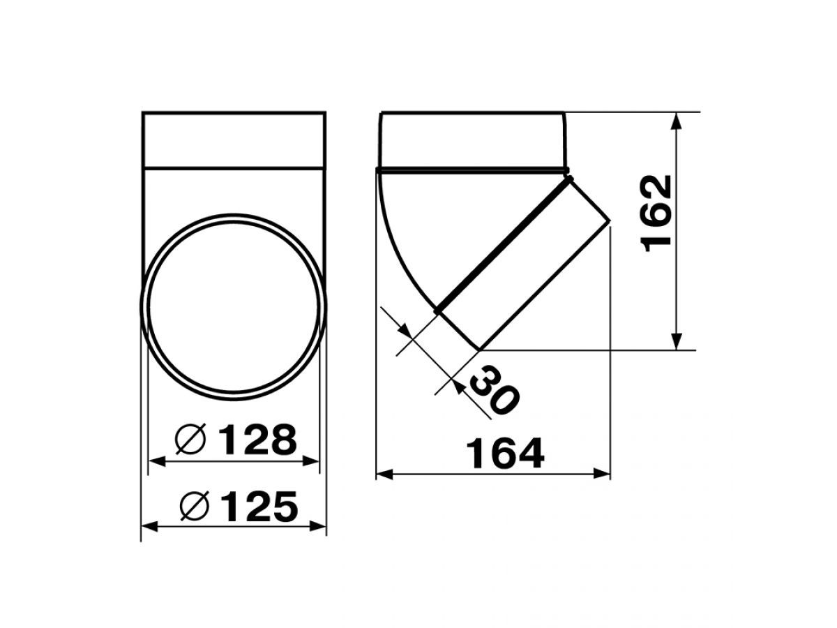 - Для соединения круглых воздуховодов одного диаметра под углом 45°.