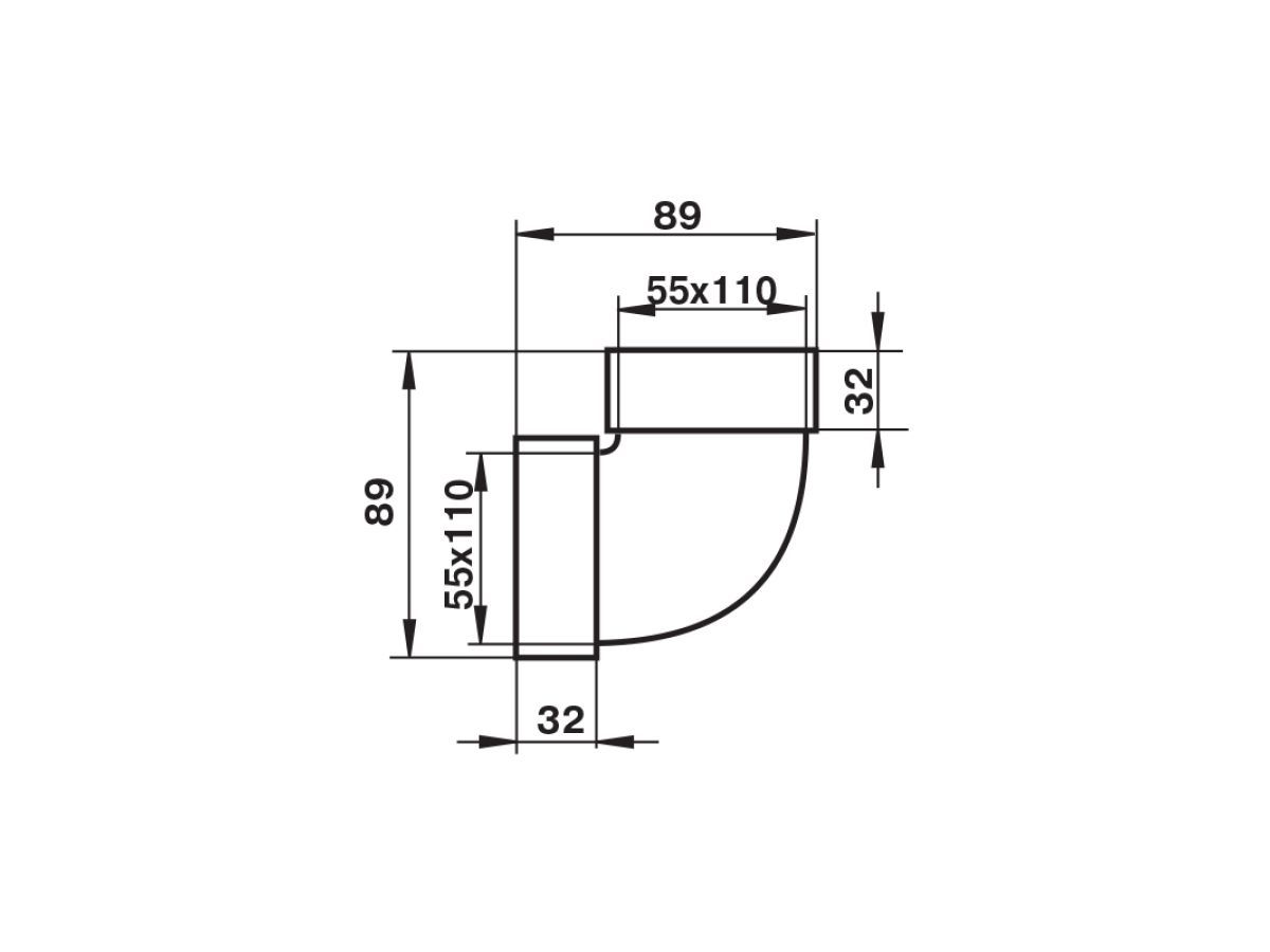 Для соединения плоских каналов одного сечения под углом 90° (горизонтально).