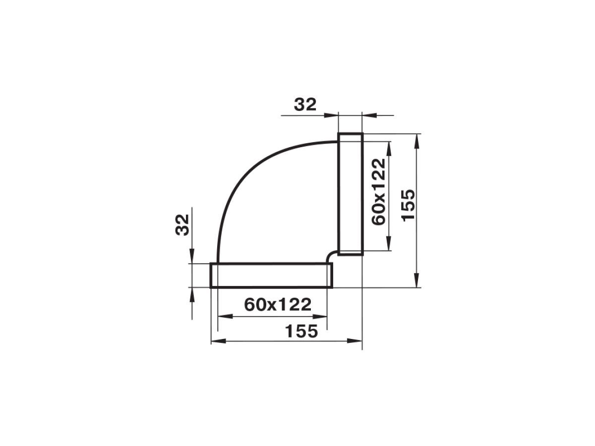 Для соединения плоских каналов одного сечения под углом 90° (горизонтально).