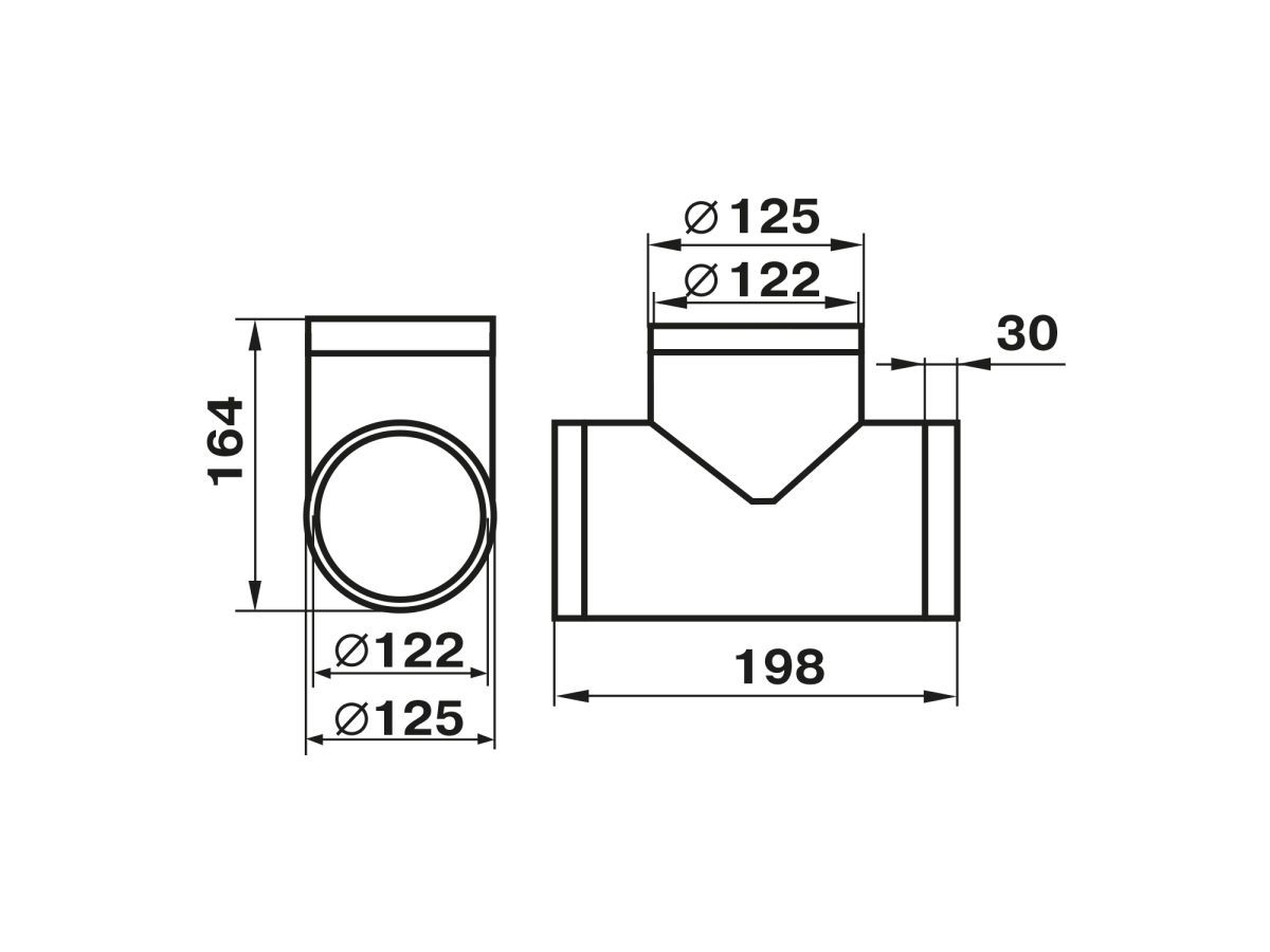 Тройник позволяет соединить 3 воздуховода одного диаметра под углом 90°.