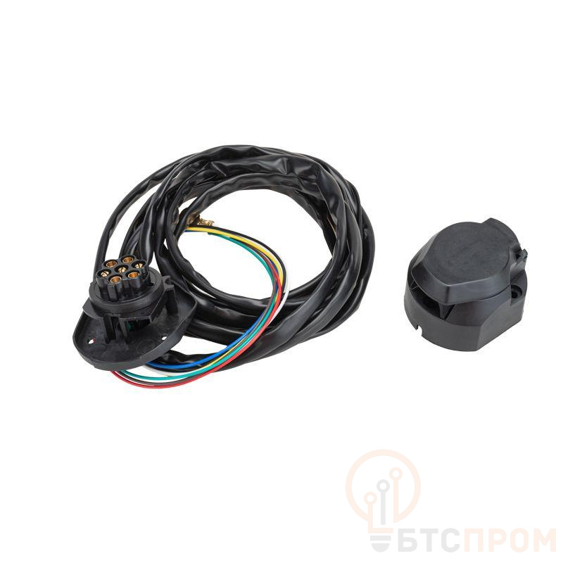 Набор предназначен для передачи электроэнергии от автомобиля к прицепу и подключения электрических систем прицепного устройства. Корпус розетки выполнен из высокопрочного пластика, благодаря чему устойчив к коррозии и механическим повреждениям. Оснащен откидной крышкой, которая защищает контакты от пыли, влаги и механических воздействий. Электрические контакты выполнены из латуни, которая обладает высокой устойчивостью к коррозии и обладает хорошей электропроводностью. Резиновый уплотнитель защищает от грязи и влаги. Провода и клеммы, входящие в комплект, позволяют без порчи штатной проводки автомобиля подключиться к проводам левого и правого фонарей. Подходит для большинства фаркопов и автомобилей, представленных на российском рынке.