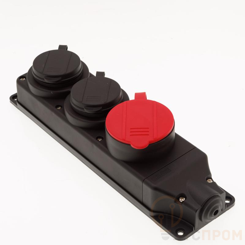 Трехместная розетка EMAS EKS325PG12 в прочном резиновом корпусе предназначена для надежной и безопасной работы в условиях повышенной влажности, запыленности и механических воздействий. Модель оснащена тремя независимыми модулями: один на три контакта (3x25А) и два на один контакт (1x16А), что позволяет одновременно подключать мощное оборудование и дополнительные устройства.