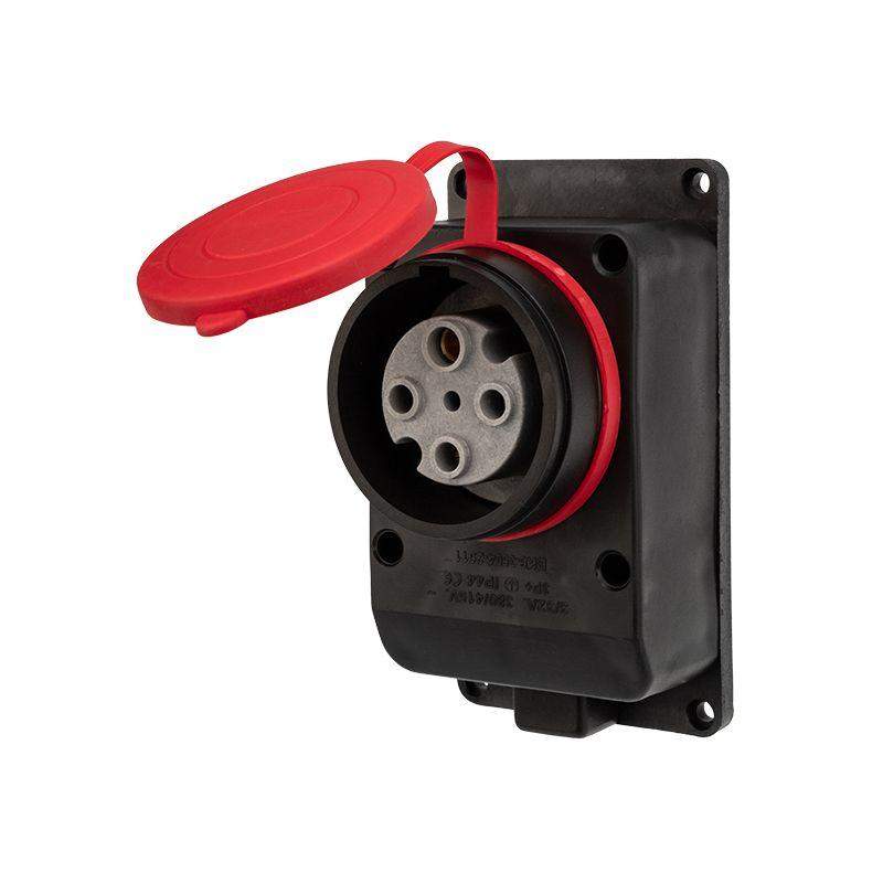 Электрическая влагозащищенная настенная розетка предназначена для подключения бытовых и профессиональных приборов к электросети. Разработана для использования в сложных эксплуатационных условиях с высокой влажностью. Широко применяется в быту, на производстве и в строительстве. Степень защиты IP44 позволяет использовать розетку для организации электропитания под открытым небом, а в дождь – под навесом. Не допускается погружение в воду. Розетка оснащена защитной крышкой. Для обеспечения безопасности детали, соприкасающиеся с токоведущими частями выполнены из огнеупорного материала, устойчивого к температуре до +850 ?С. Ударопрочный разборный корпус выполнен из каучука: устойчив к ударам, вибрациям и другим механическим воздействиям. Заземление: есть. Сечение проводников: до 6,0 мм2. Контактная группа: MS-58 (латунь). Тип полюсов: 3Р+РЕ.
