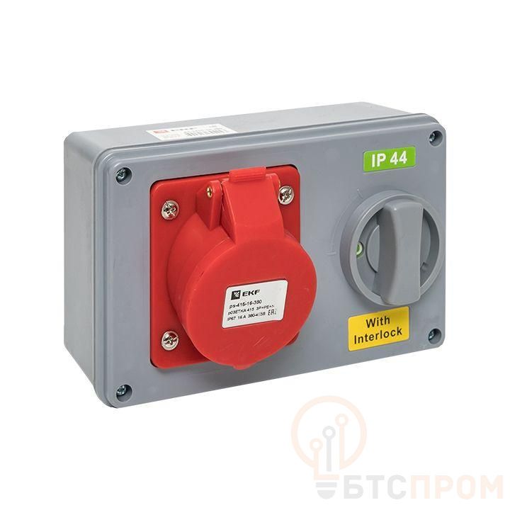 Розетка 1415 3Р+РЕ+N 16А 380В IP44 с блокировкой и выкл. EKF ps-1415-16-380 фото в каталоге от BTSprom.by