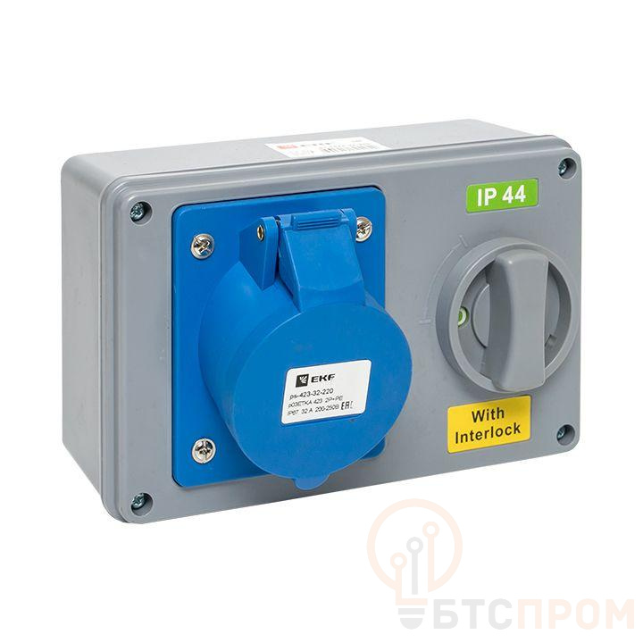 Розетка с блокировкой и выключателем EKF предназначена для подключения высокомощного промышленного и строительного оборудования. Также применяется для подключения мобильных пунктов питания, жилых трейлеров и т.д