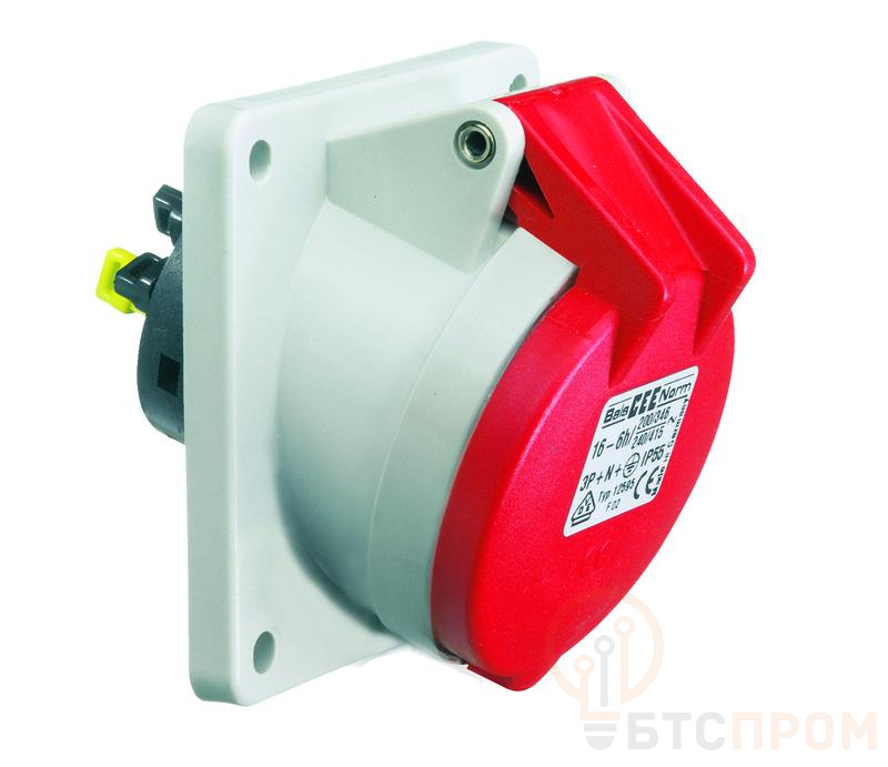 Розетка 16А 5п 3P+N+PE 6ч 400В IP44 наклонная фланец 85х85 Bals 12757 фото в каталоге от BTSprom.by