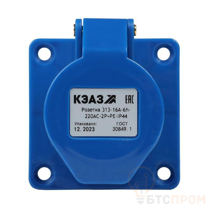 Силовая розетка 3 полюсная на номинальный ток 16 А и номинальное рабочее напряжение переменного тока 220 В.