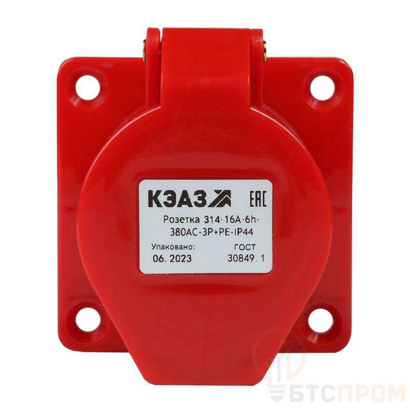 Силовая розетка 4 полюсная на номинальный ток 16 А и номинальное рабочее напряжение переменного тока 380 В.