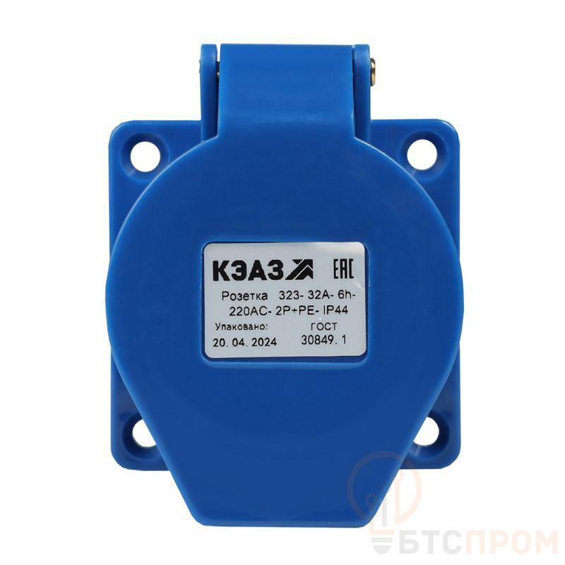 Силовая розетка 3 полюсная на номинальный ток 32 А и номинальное рабочее напряжение переменного тока 220 В.