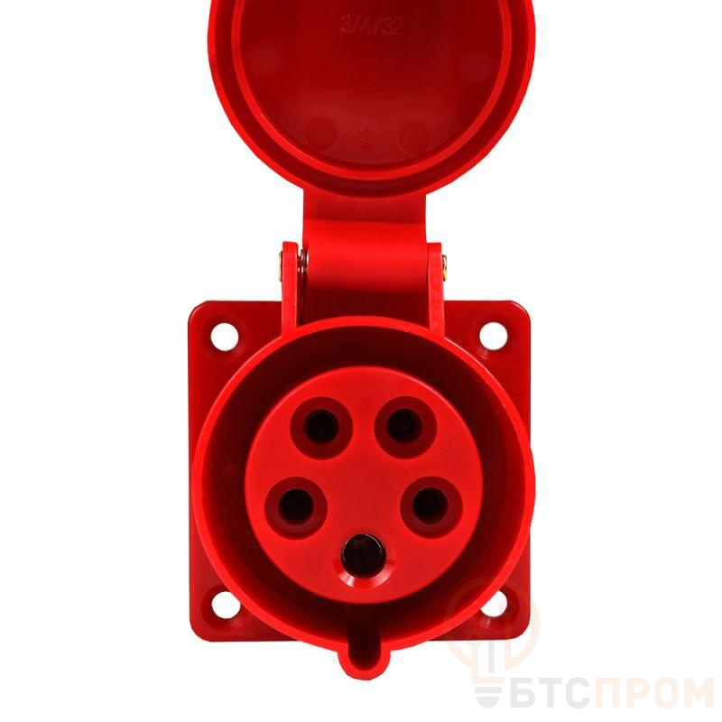 Силовая розетка 5 полюсная на номинальный ток 32 А и номинальное рабочее напряжение переменного тока 380 В.