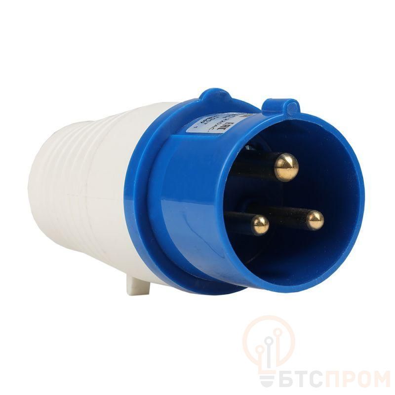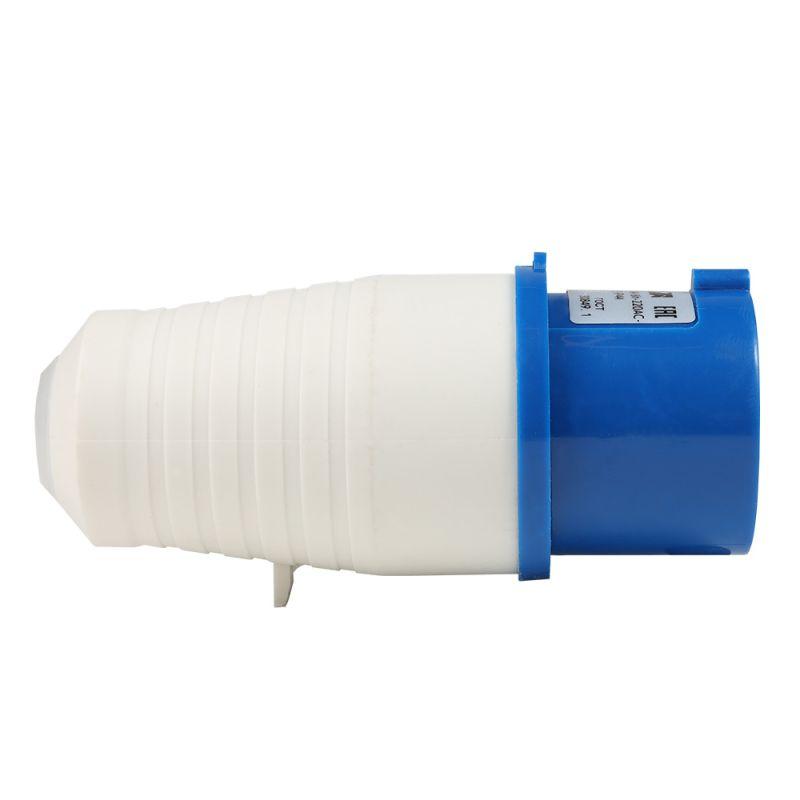 Силовая вилка 3 полюсная на номинальный ток 32 А и рабочее напряжение переменного тока 220 В.