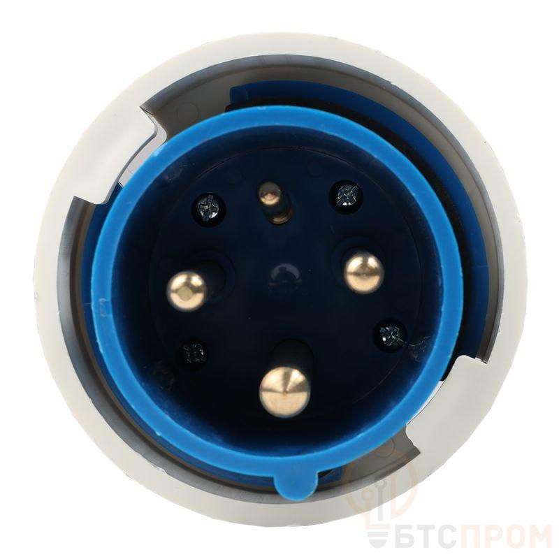 Силовая вилка 3 полюсная на номинальный ток 63 А и рабочее напряжение переменного тока 220 В.