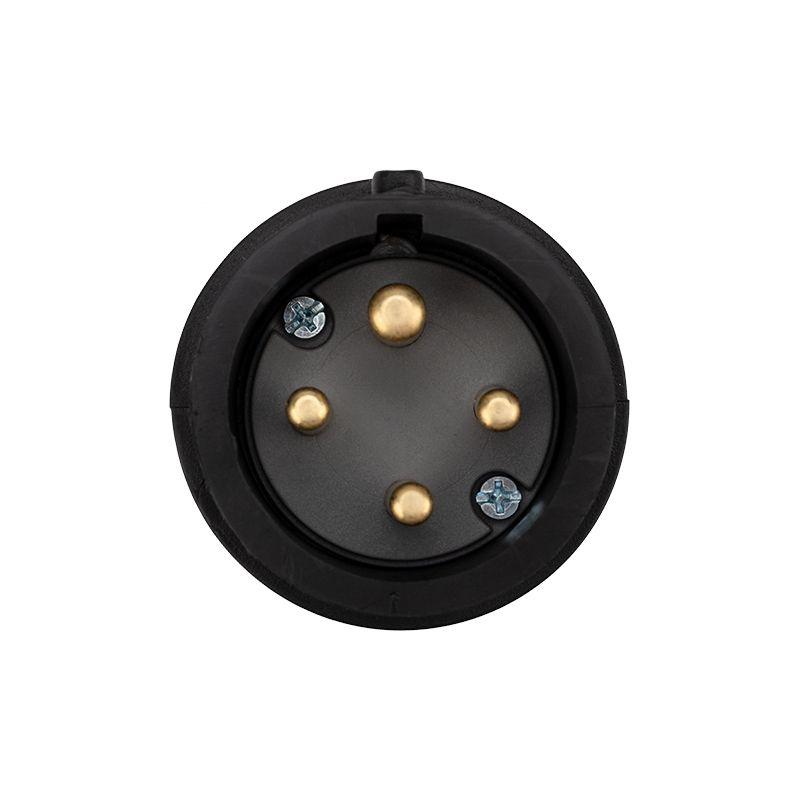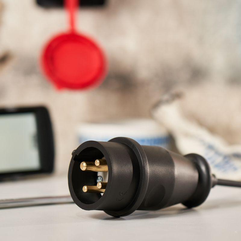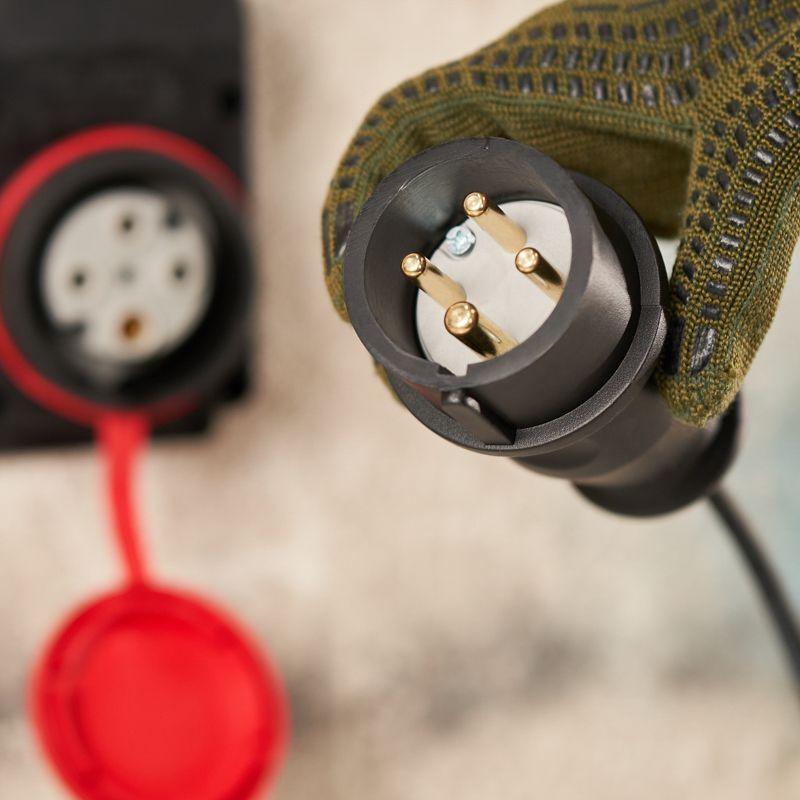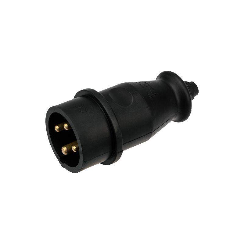 Влагозащищенная вилка предназначена для подключения бытовых и профессиональных приборов к электросети. Вилка разработана для использования в сложных эксплуатационных условиях с высокой влажностью. Широко применяется в быту, на производстве и в строительстве. Степень защиты IP44 позволяет использовать вилку для организации электропитания под открытым небом, а в дождь – под навесом. Не допускается погружение в воду. Для обеспечения безопасности детали, соприкасающиеся с токоведущими частями выполнены из огнеупорного материала, устойчивого к температуре до +850 ?С. Ударопрочный разборный корпус выполнен из каучука: устойчив к ударам, вибрациям и другим механическим воздействиям. Заземление: есть. Сечение проводников: до 6,0 мм2. Контактная группа: MS-58 (латунь). Тип полюсов: 3Р+РЕ.